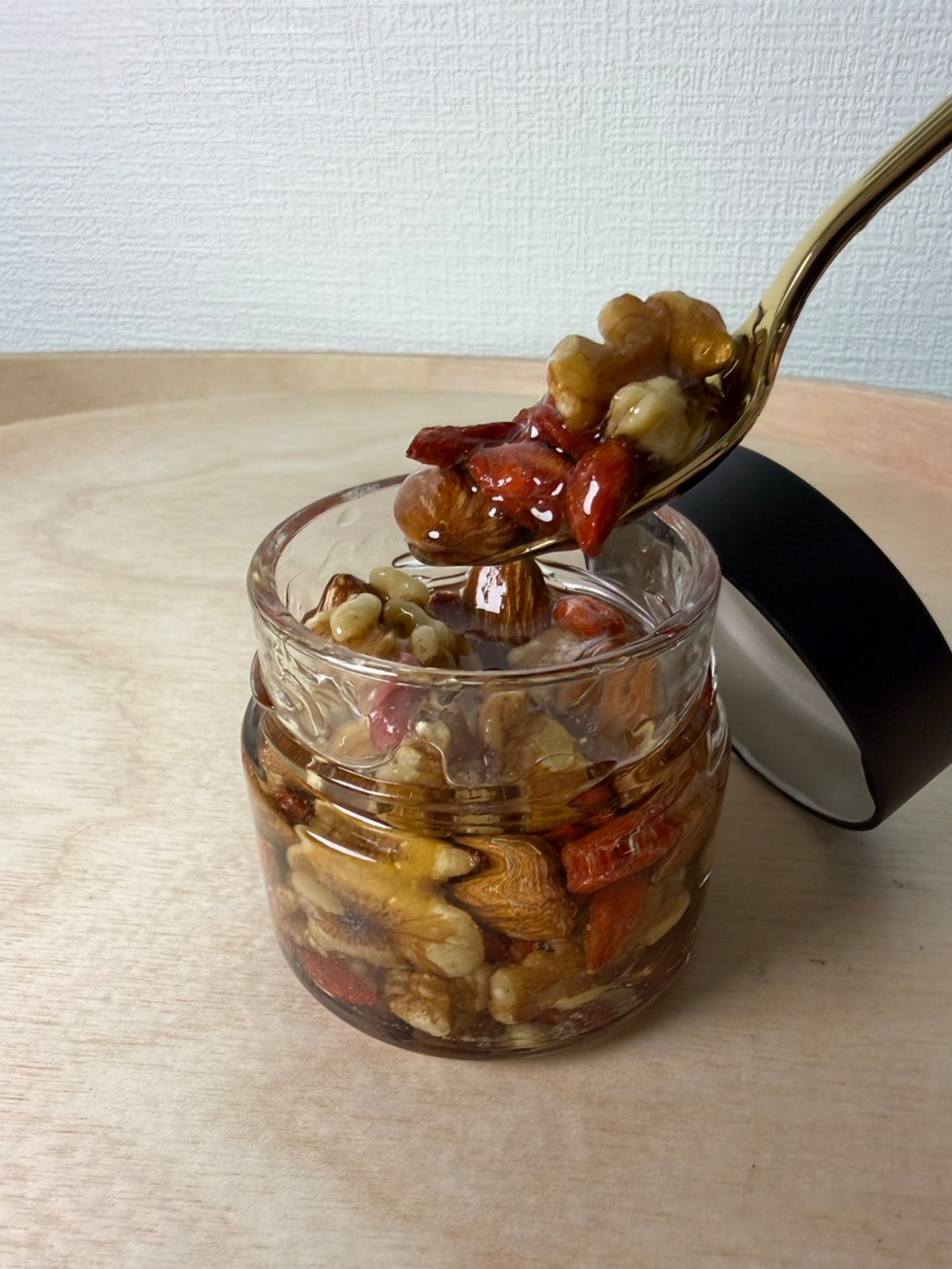・厳選された素材: 蜂蜜とナッツ、クコの実が調和する、上質な品質を追求しました。